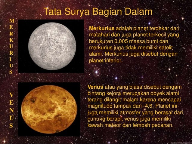 Manusia adalah salah satu makhluk hidup yang tinggal di sebuah bintang yang bernama bumi. Trackers 20.42 planet tata surya no comment. Susunan dan anggota tata surya. Tata suryaa adalah kumpulan benda langit yang terdiri atas sebuah bintang yang disebut matahari dan semua objek yang terikat oleh gaya gravitasinya. Berbeda dengan planet yang lain, waktu rotasi merkurius hanya 59 hari dan waktu revolusinya 88 hari.